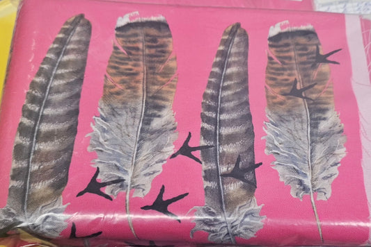 Gabardine Printed Fabric Turkey Feathers Pink 2 YRDs
