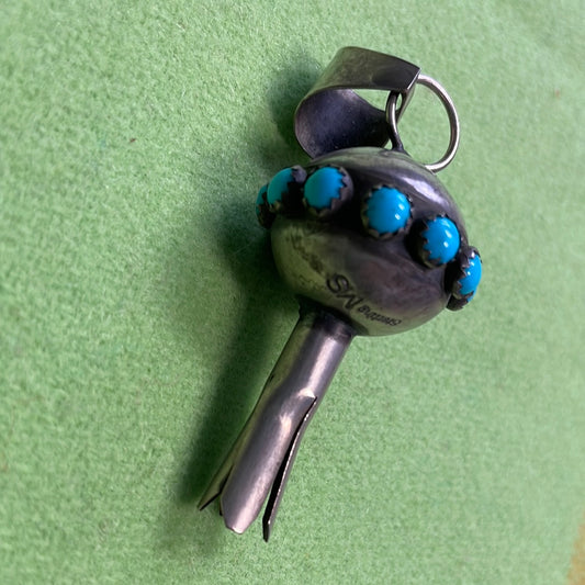 Sterling Silver Concho Dangle Squash Blossom Style With Turquoise