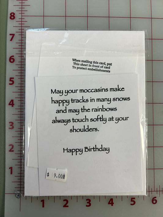 Wëlí katënamí Happy Birthday Card “Many Feathers”