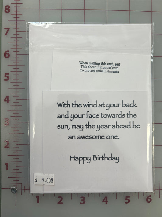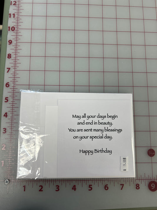 Wëlí katënamí! Happy Birthday Card “Blue Blossoms w/ Pink Butterfly”