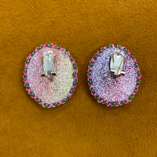 White, Green, Pink Iridescent Glitter Cabochon Earrings