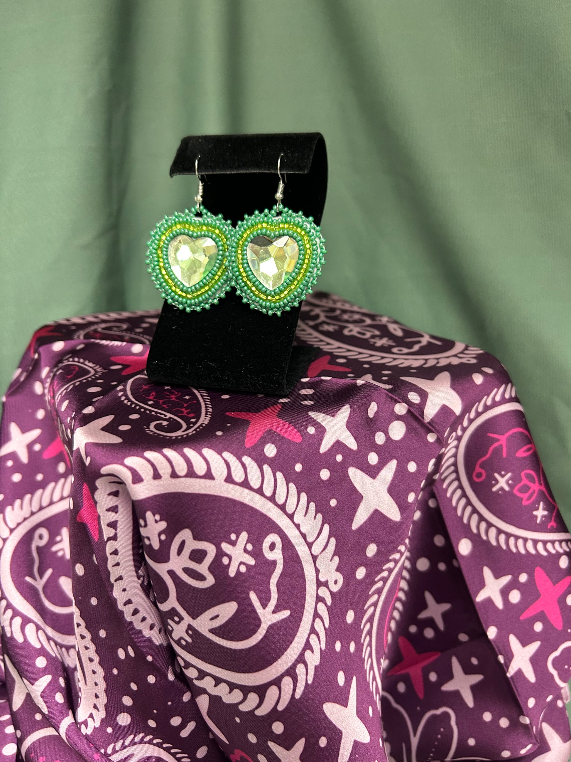 Cabochon Heart Style Earrings Green Hook Style Earrings