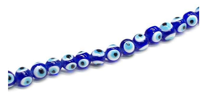 The evil eye beads are made from glass and are 8mm strung on a 16" strand of apx 48 beads.