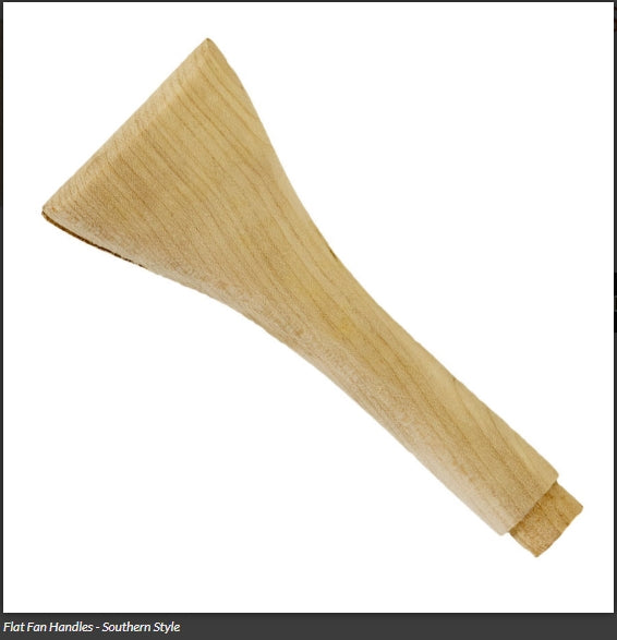 Flat Fan Handles - Southern Style, like our other fan handles, are made by a Native American craftsman, these fan handles are not your "run of the mill" hunks of wood. These Flat Fan Handles - Flat Style are nicely shaped and fully sanded by hand to give you the best finished product possible. An absolute pleasure to bead compared to other handles. Measuring 6" long by 2" wide, they are perfect for the larger fans used in Powwow regalia and certainly can be cut down and reshaped to fit smaller fans.