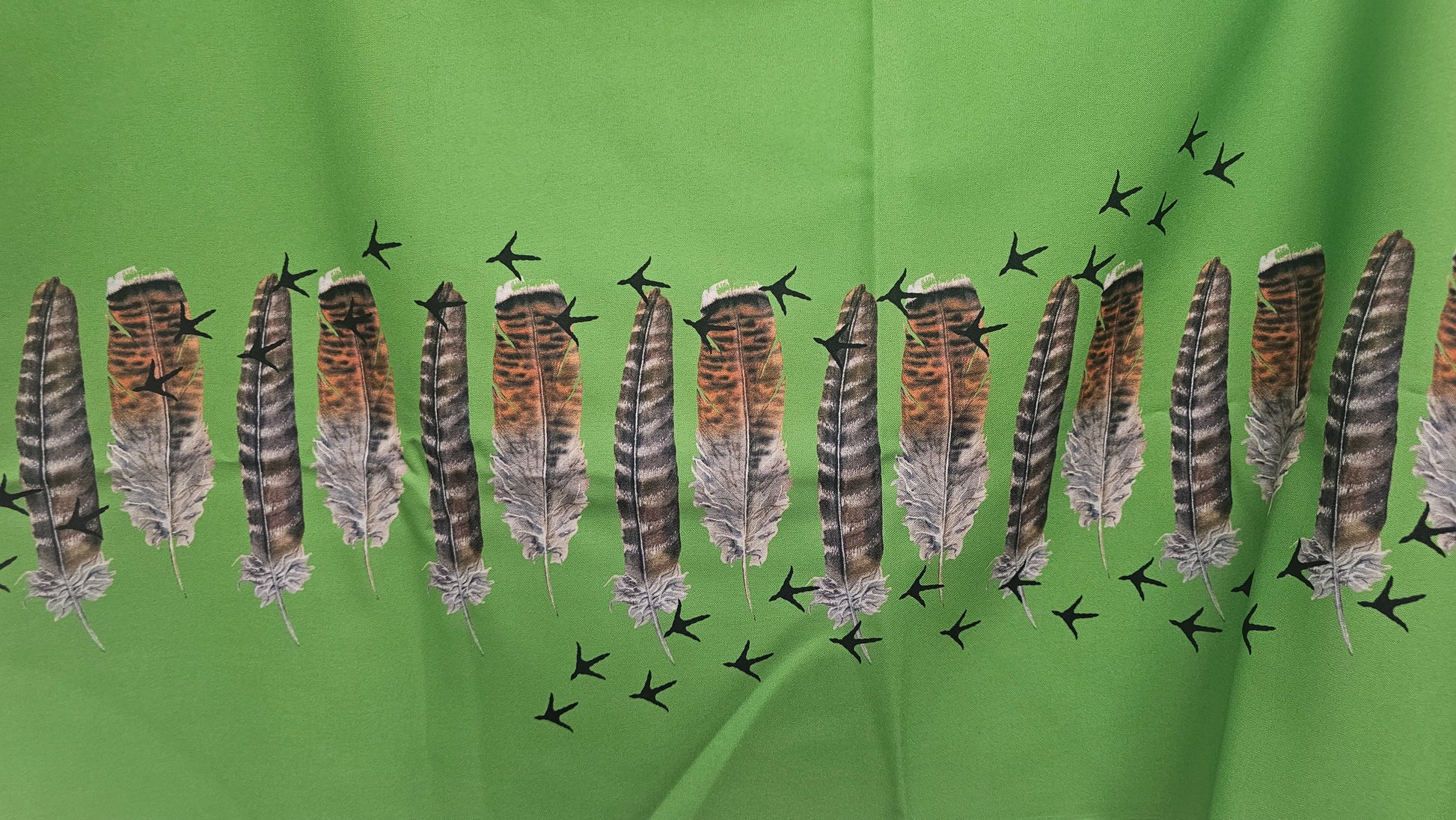 Gabardine Printed Fabric Turkey Feathers Green 2 YRDs