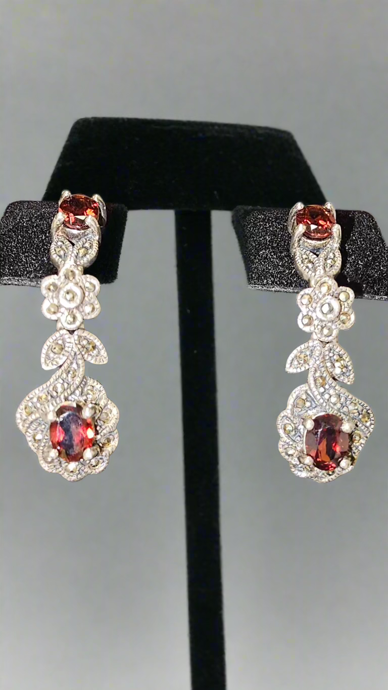 6 Carat Garnet Marcasites .925 Sterling Earrings