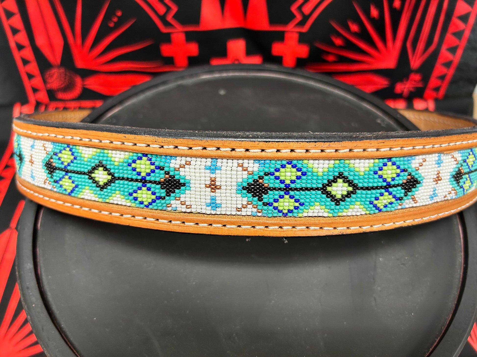 Hand Beaded , Genuine Leather Belt, NO BUCKLE , Sold Separately