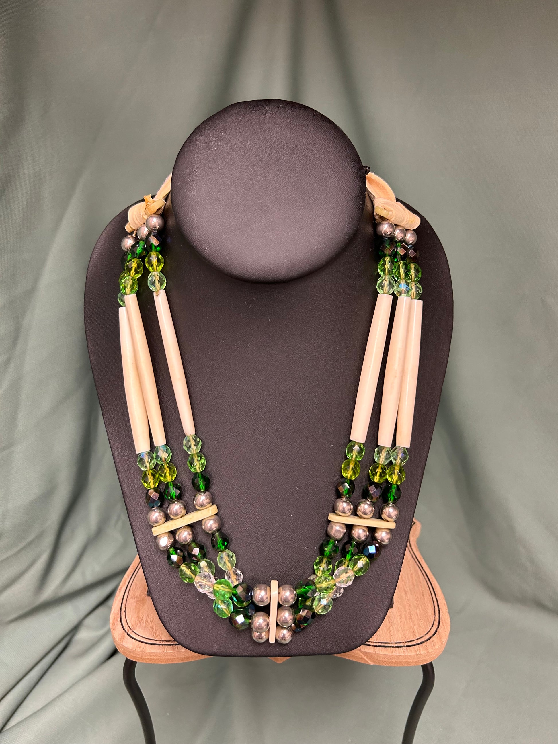 8mm Glass Bead Choker Necklace Green 2 1/2 " Bone Hairpipe Necklace
