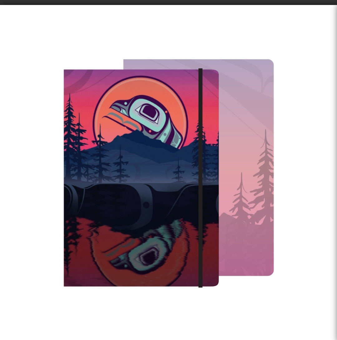 Pen your wishes, whimsies, dreams, and plans within the pages of this indigenous art journal. This hardcover journal features rounded corners for reduced wear and elastic band closure. 192 pages with blank pages on the left and lined pages on the right for personal reflection, sketching, or jotting down favourite quotations or poems.