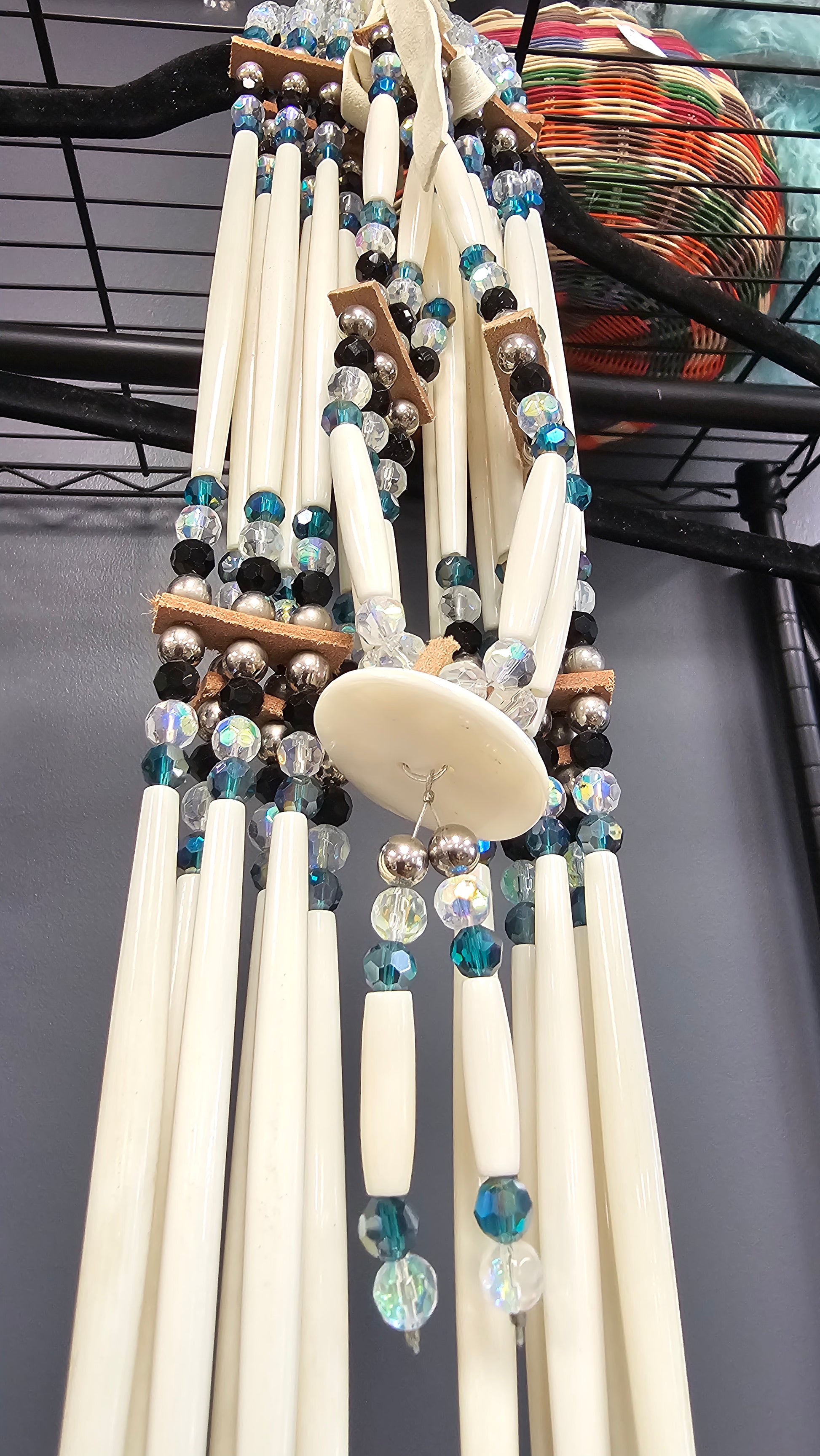 Mens Bandolier Cross Bead Set Aqua, Clear & Black 35"L
