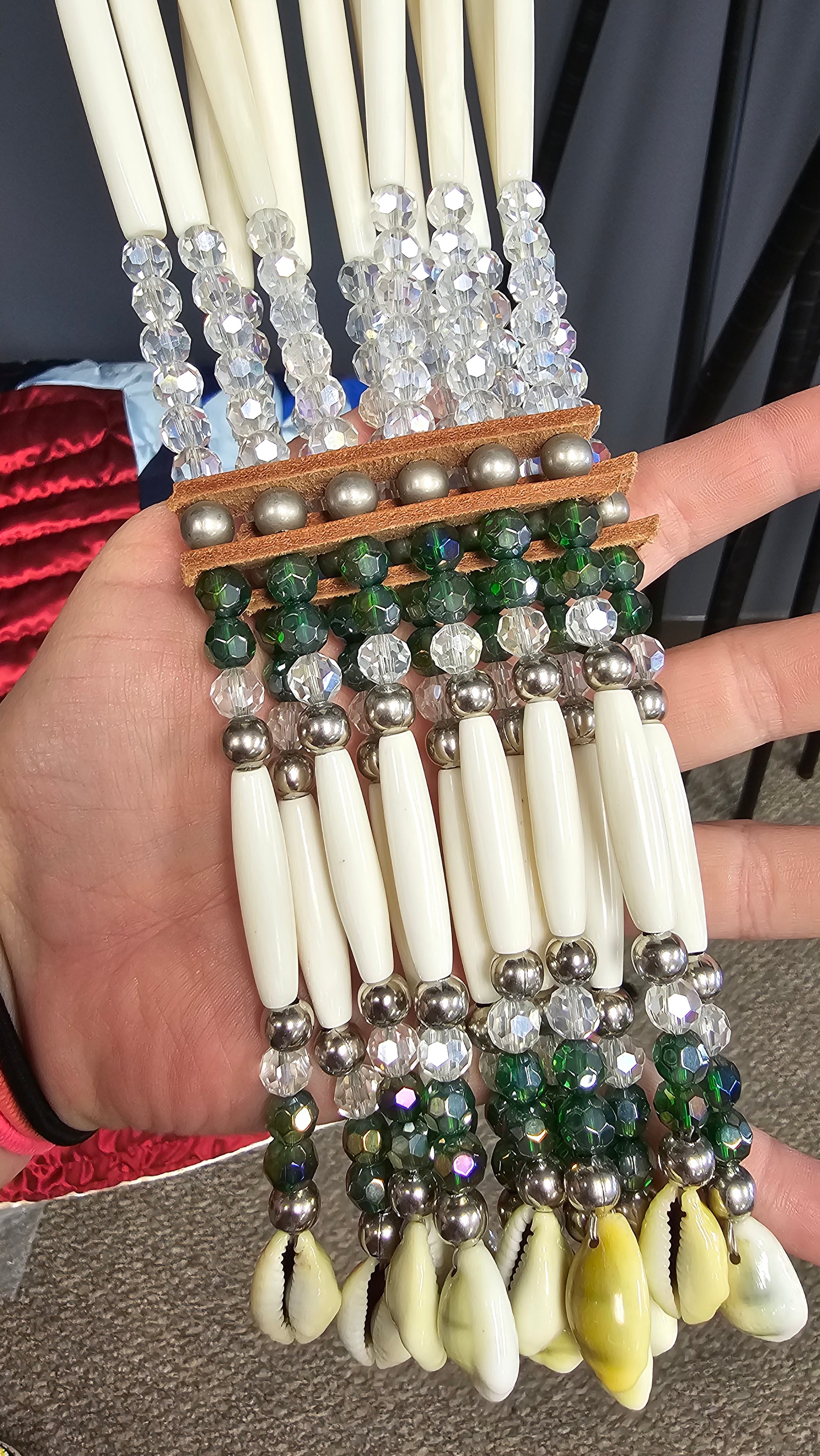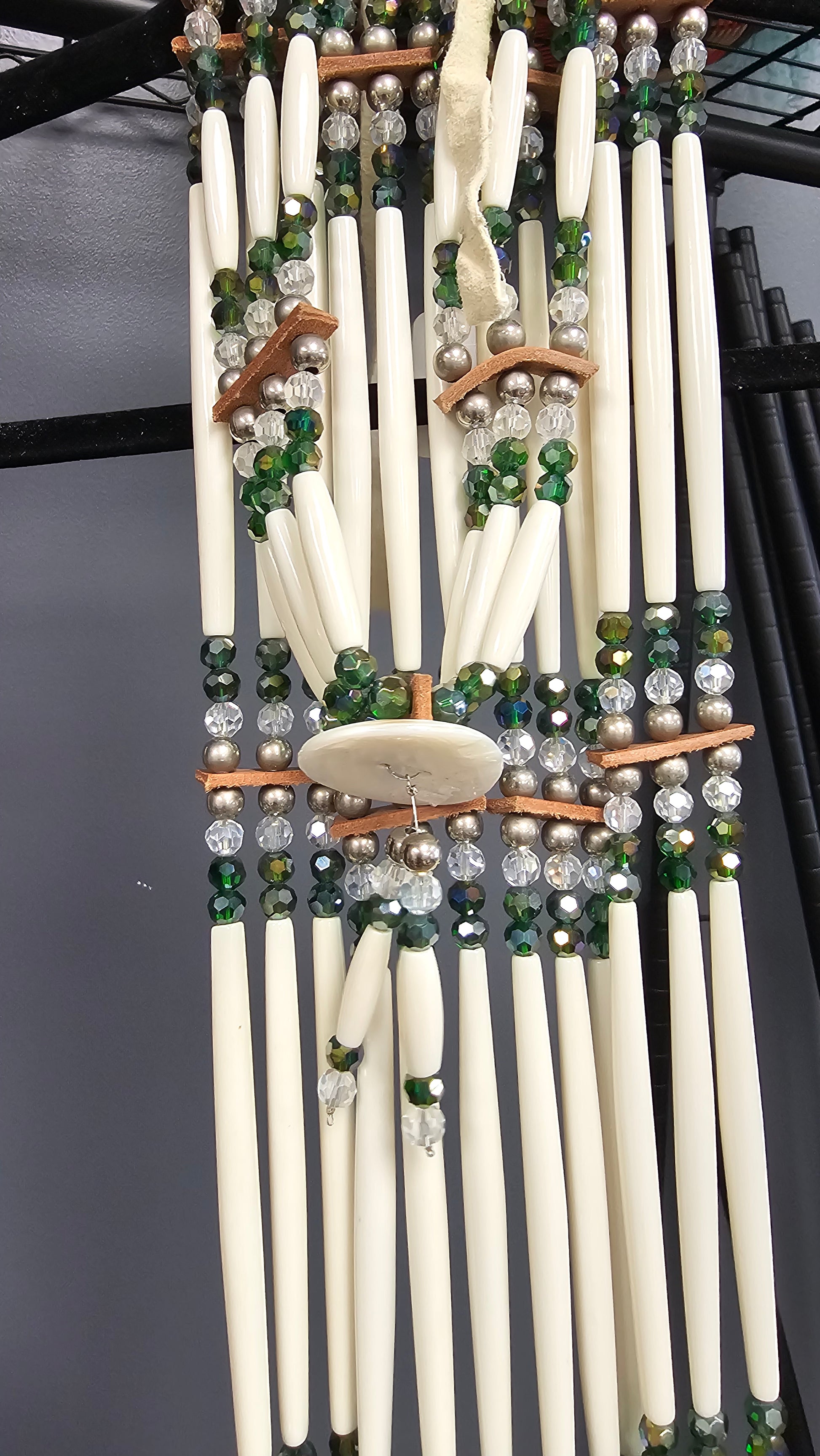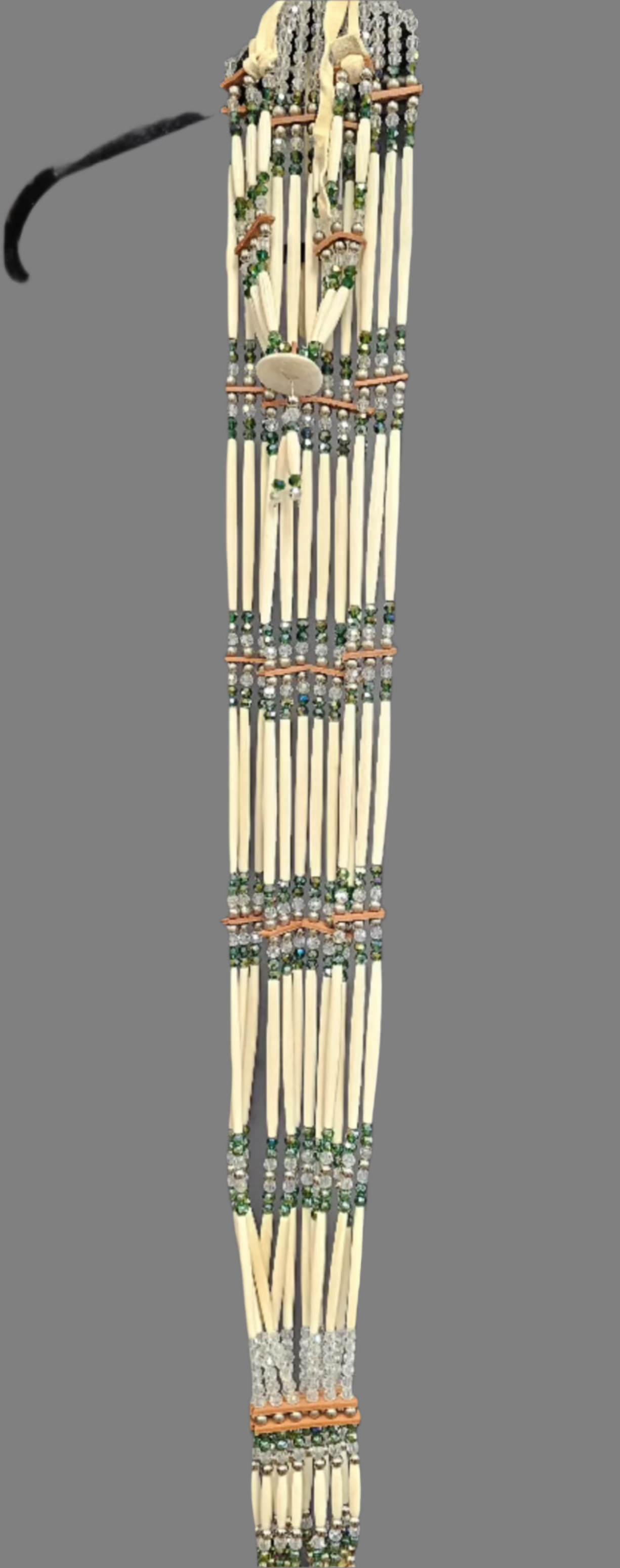 Mens Bandolier Cross Bead Set Green & Clear 39" L