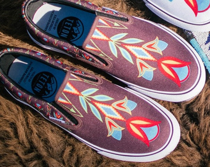 The Classic Slip-On features sturdy low profile slip-on canvas uppers, padded collars, elastic side accents, and signature rubber waffle outsoles. Designed by Kira Murillo, exclusively for Teton Trade Cloth, these slip-ons are the epitome of high fashion. You can wear these shoes with anything, anywhere. Available in 3 colors and whole sizes. Teton Trade Cloth found the factory that makes the classic canvas slip-on for that huge brand and had them design these exclusively for Teton. Note the Teton exclusive features and all-over design, these are the new classic!