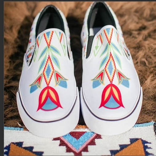 The Classic Slip-On features sturdy low profile slip-on canvas uppers, padded collars, elastic side accents, and signature rubber waffle outsoles. Designed by Kira Murillo, exclusively for Teton Trade Cloth, these slip-ons are the epitome of high fashion. You can wear these shoes with anything, anywhere. Available in 3 colors and whole sizes. Teton Trade Cloth found the factory that makes the classic canvas slip-on for that huge brand and had them design these exclusively for Teton. Note the Teton exclusive features and all-over design, these are the new classic!