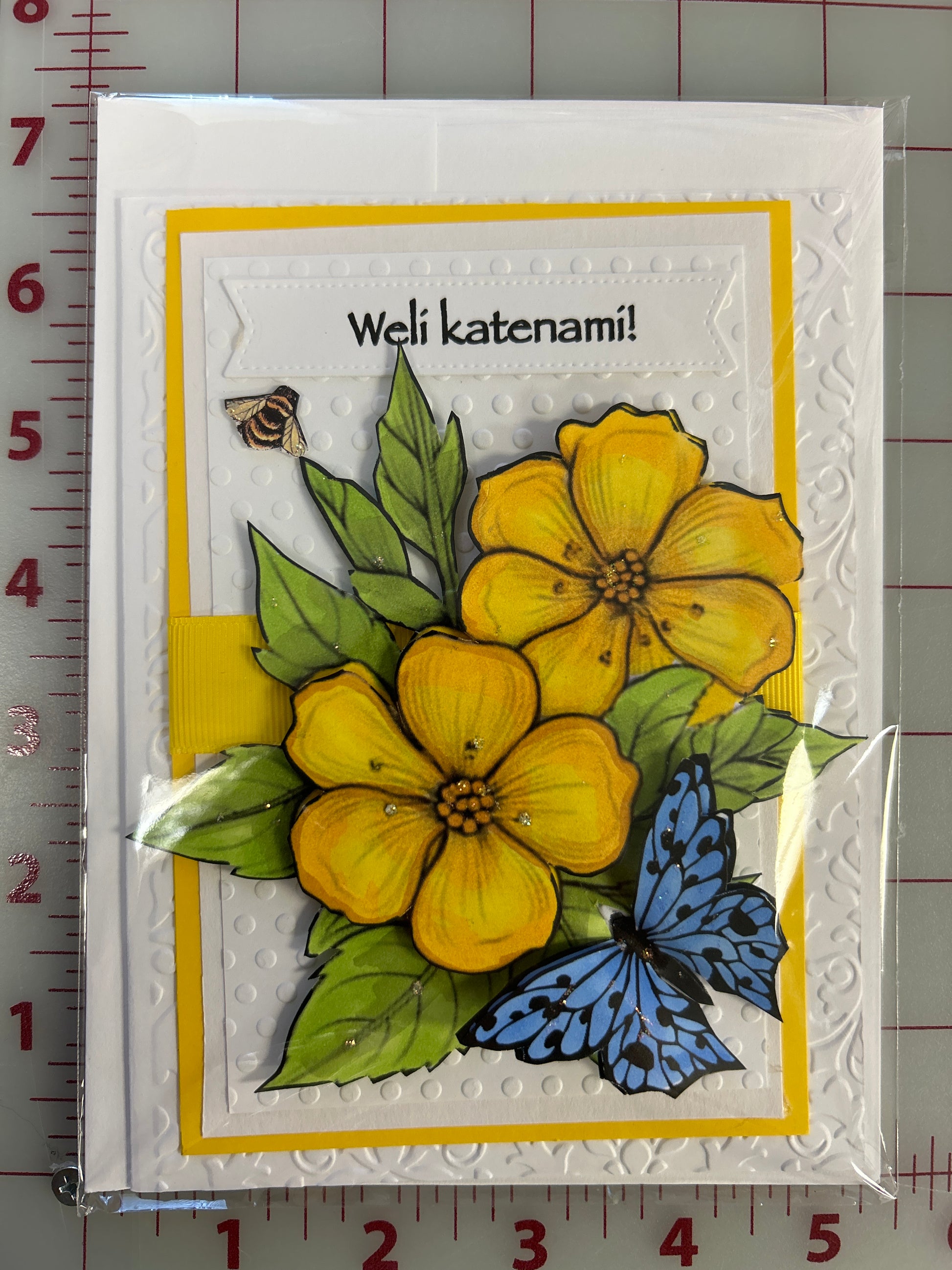 Wëlí katënamí Happy Birthday Card “Yellow Blossoms”
