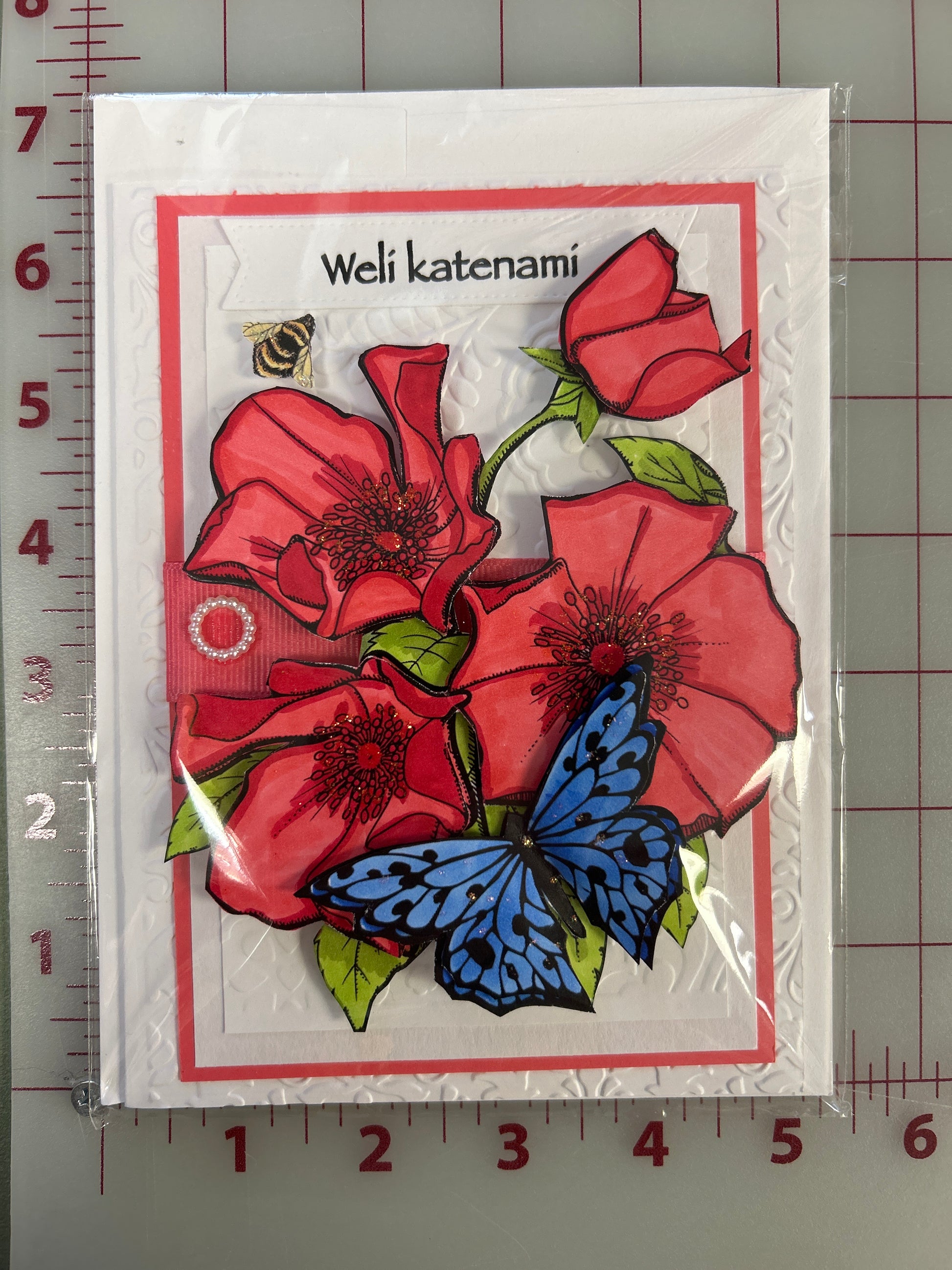 Wëlí katënamí Happy Birthday Card “Red Poppies”