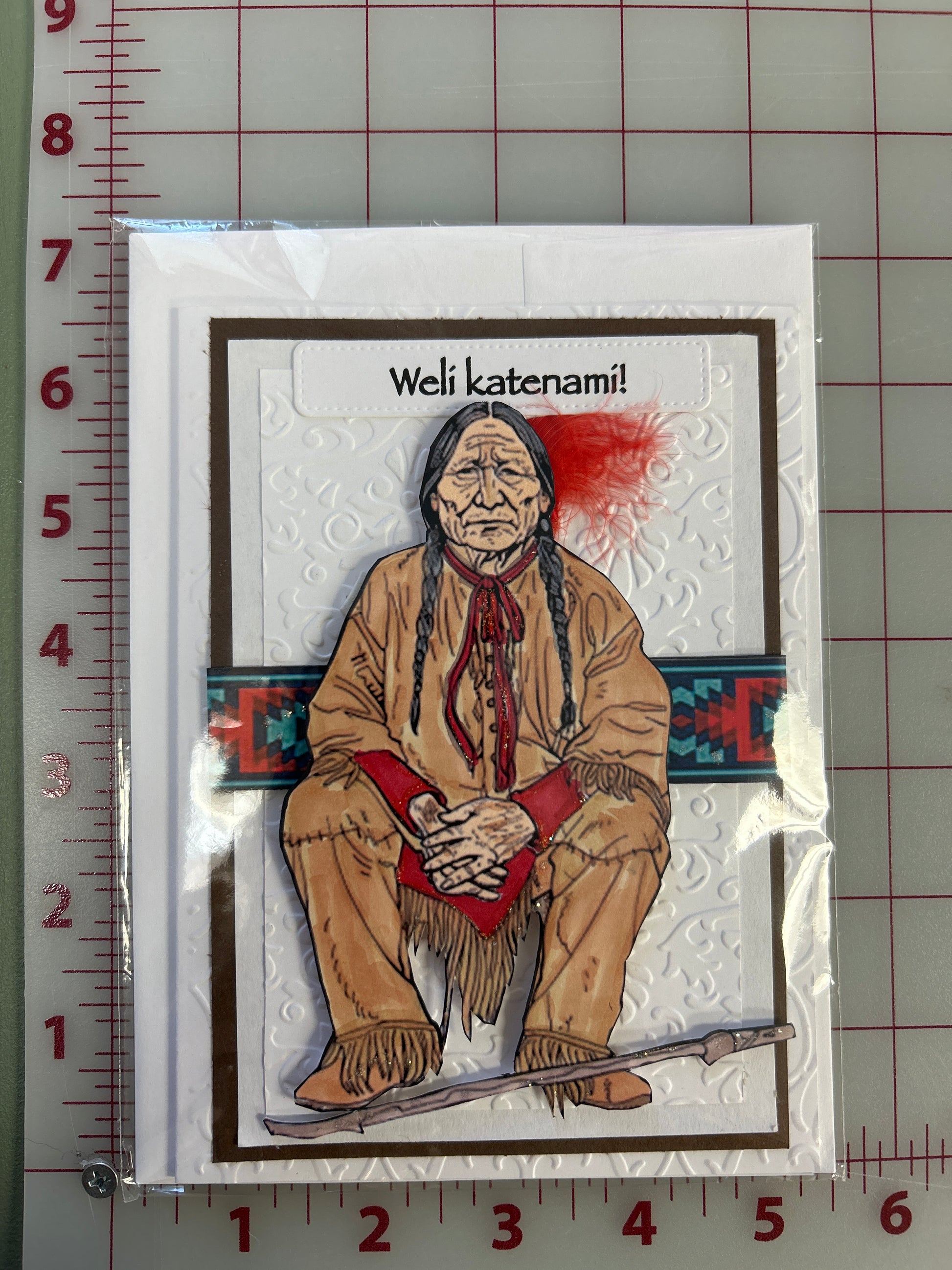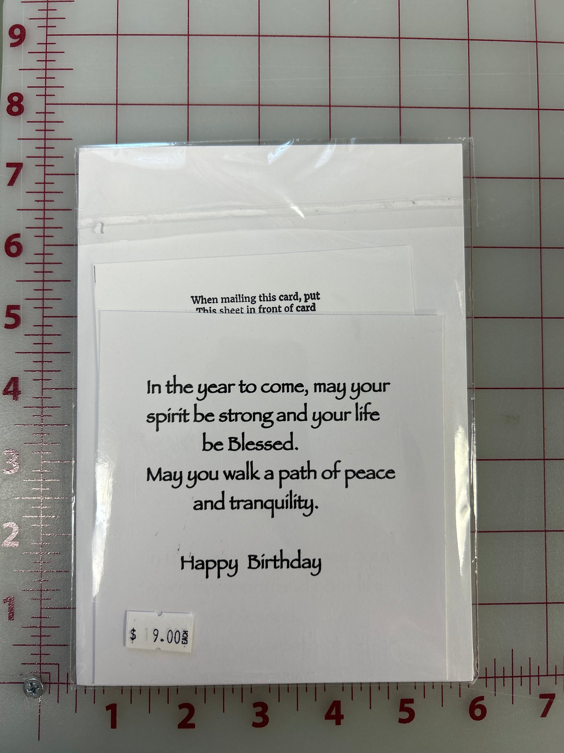 Wëlí katënamí (front) In the year to come, may your spirit be strong and your life be blessed. May you walk a path of peace and tranquility. Happy Birthday (inside)