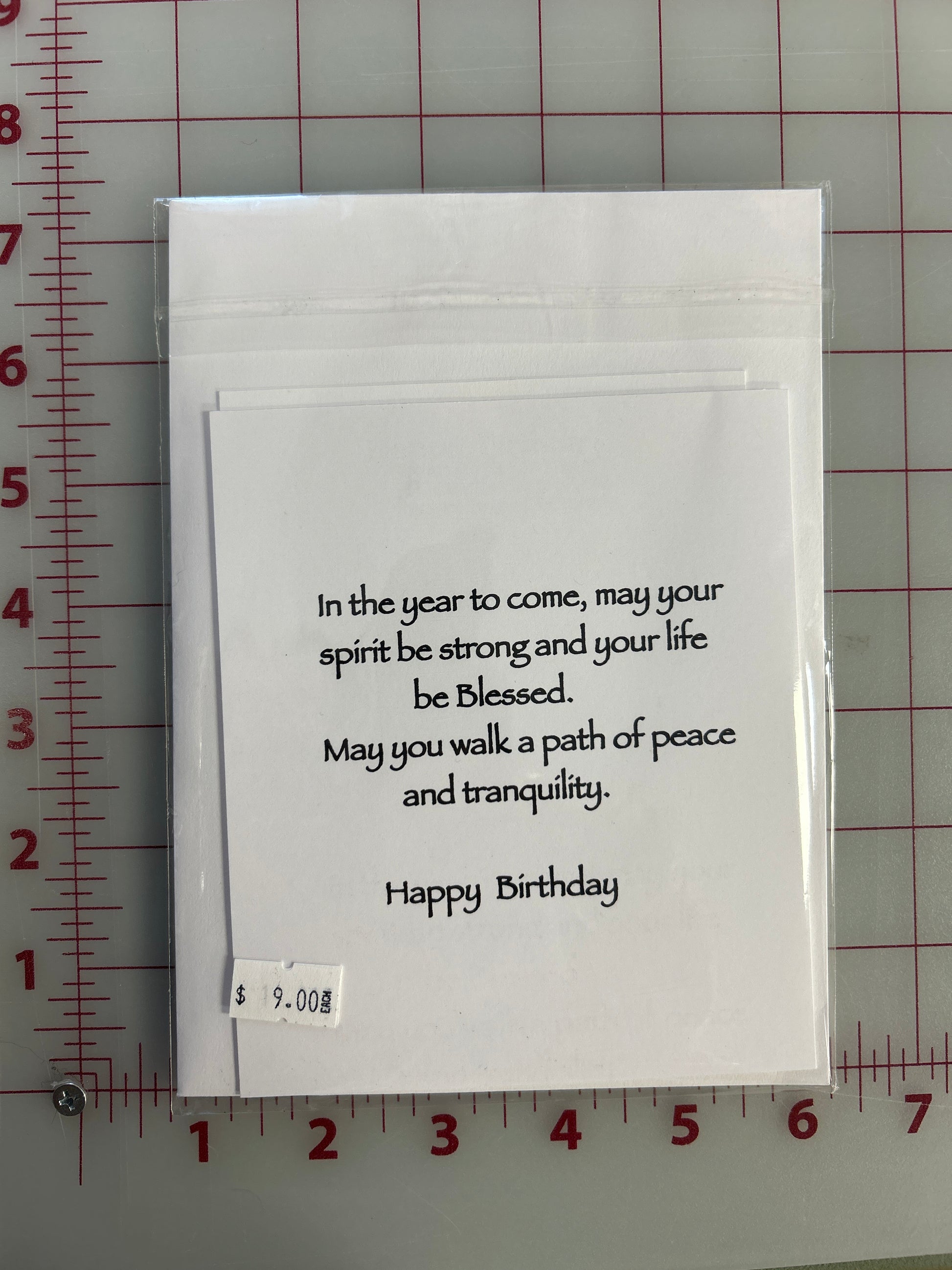 Wëlí katënamí ( front) In the year to come , may your spirit be strong and your life be blessed. May you walk a path of peace and tranquility. Happy Birthday (inside)