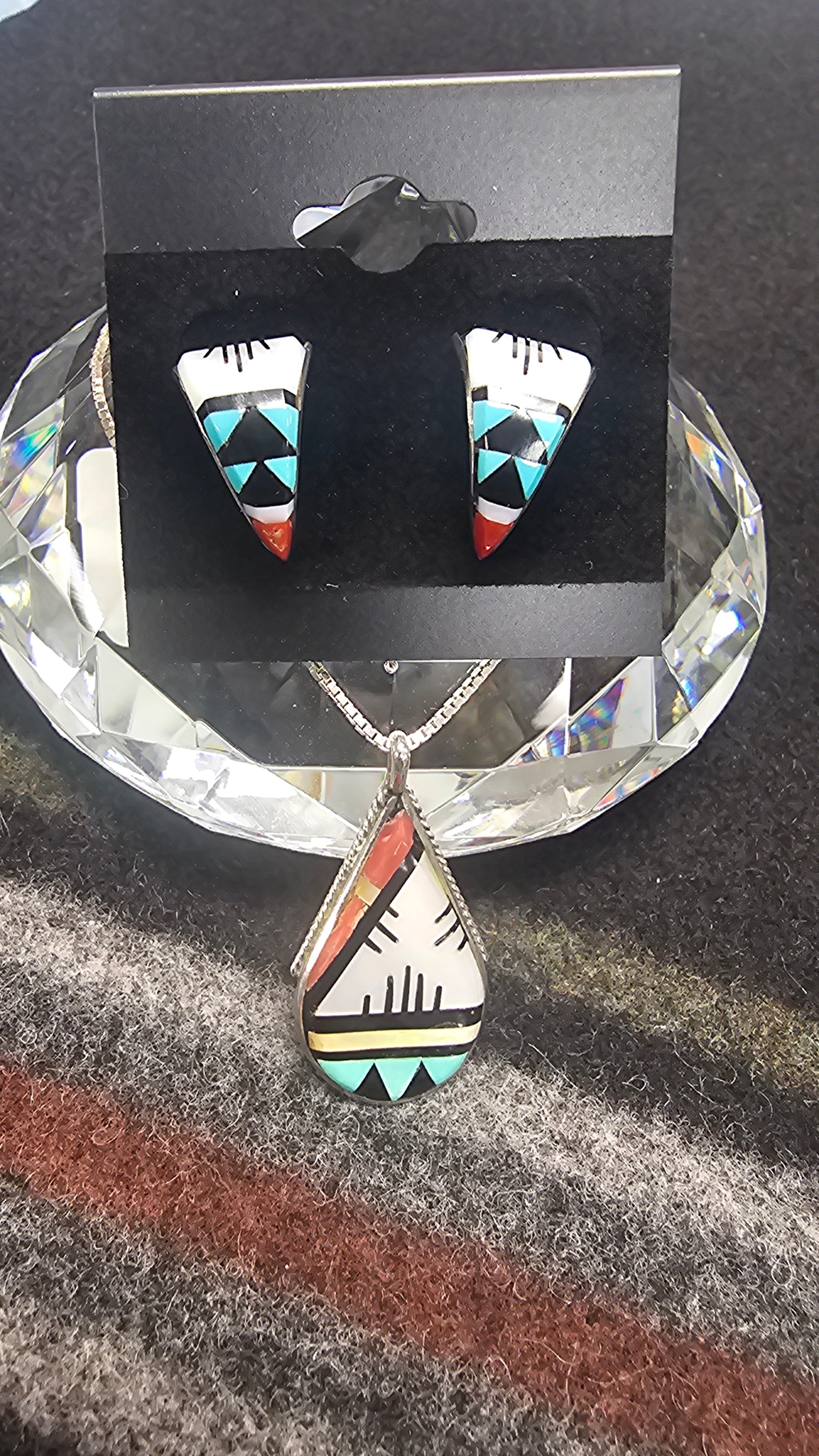 Zuni Inlay Pendant and Earring Set